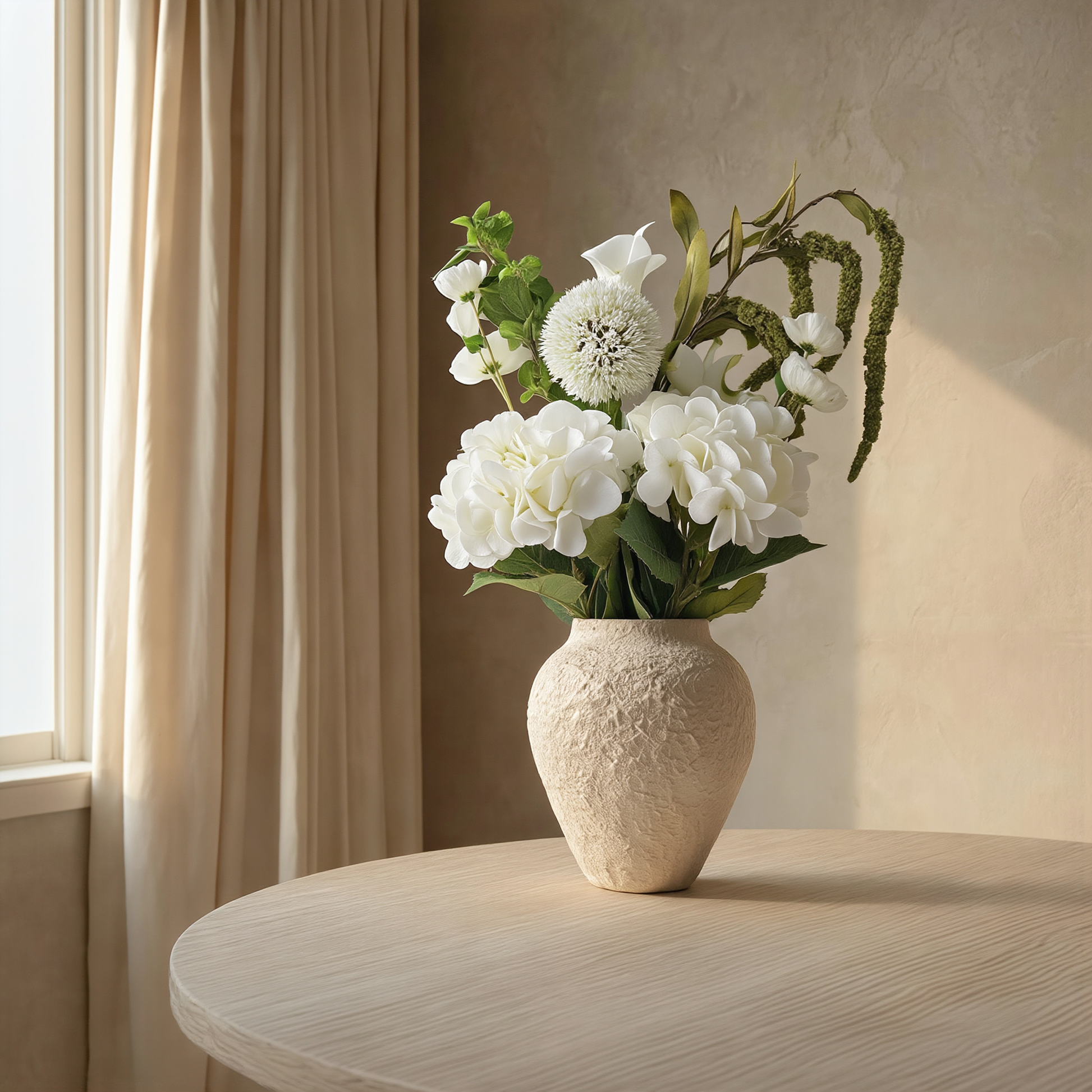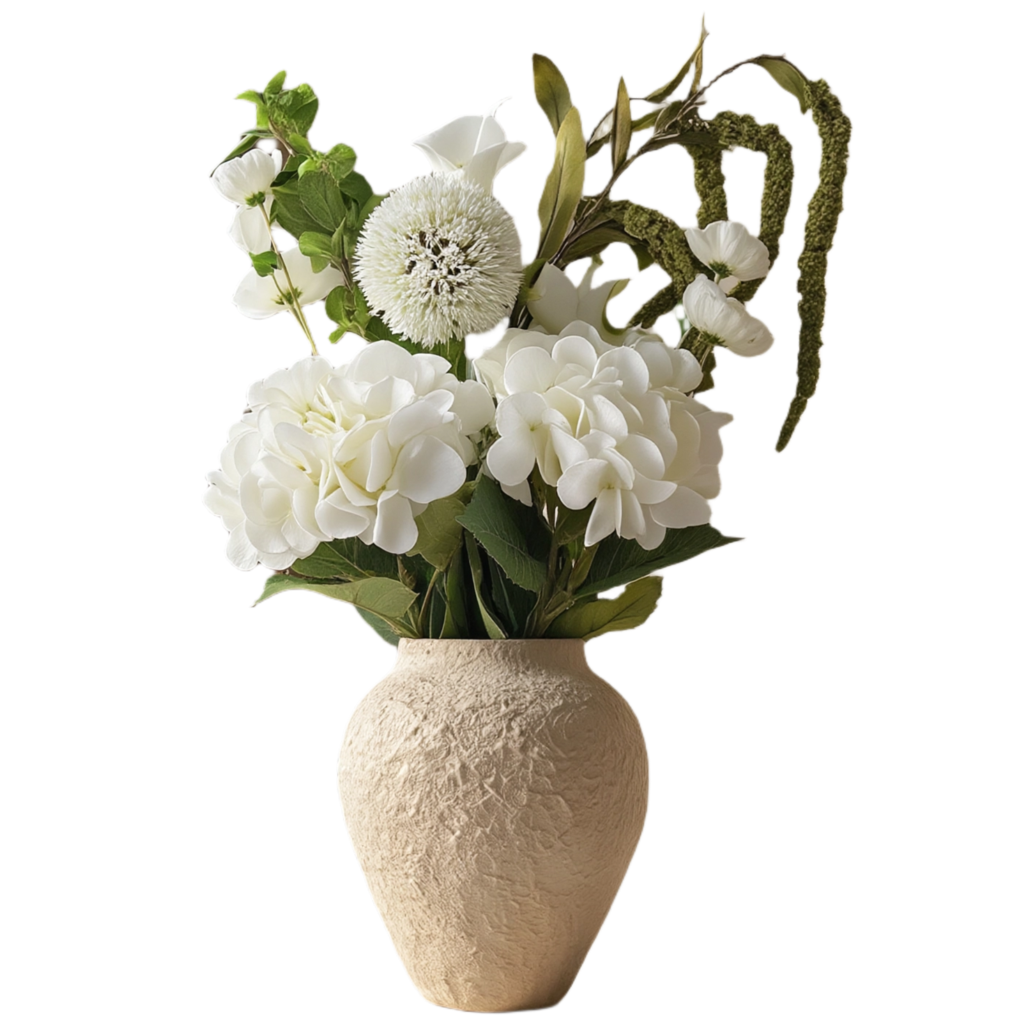 Skap et lyst og harmonisk uttrykk med Elysia Hvit Bukett – en sofistikert sammensetning av hvite blomster og naturlige grønne detaljer. De myke formene og rene tonene gir et rolig, eksklusivt preg som passer perfekt i moderne hjem.
