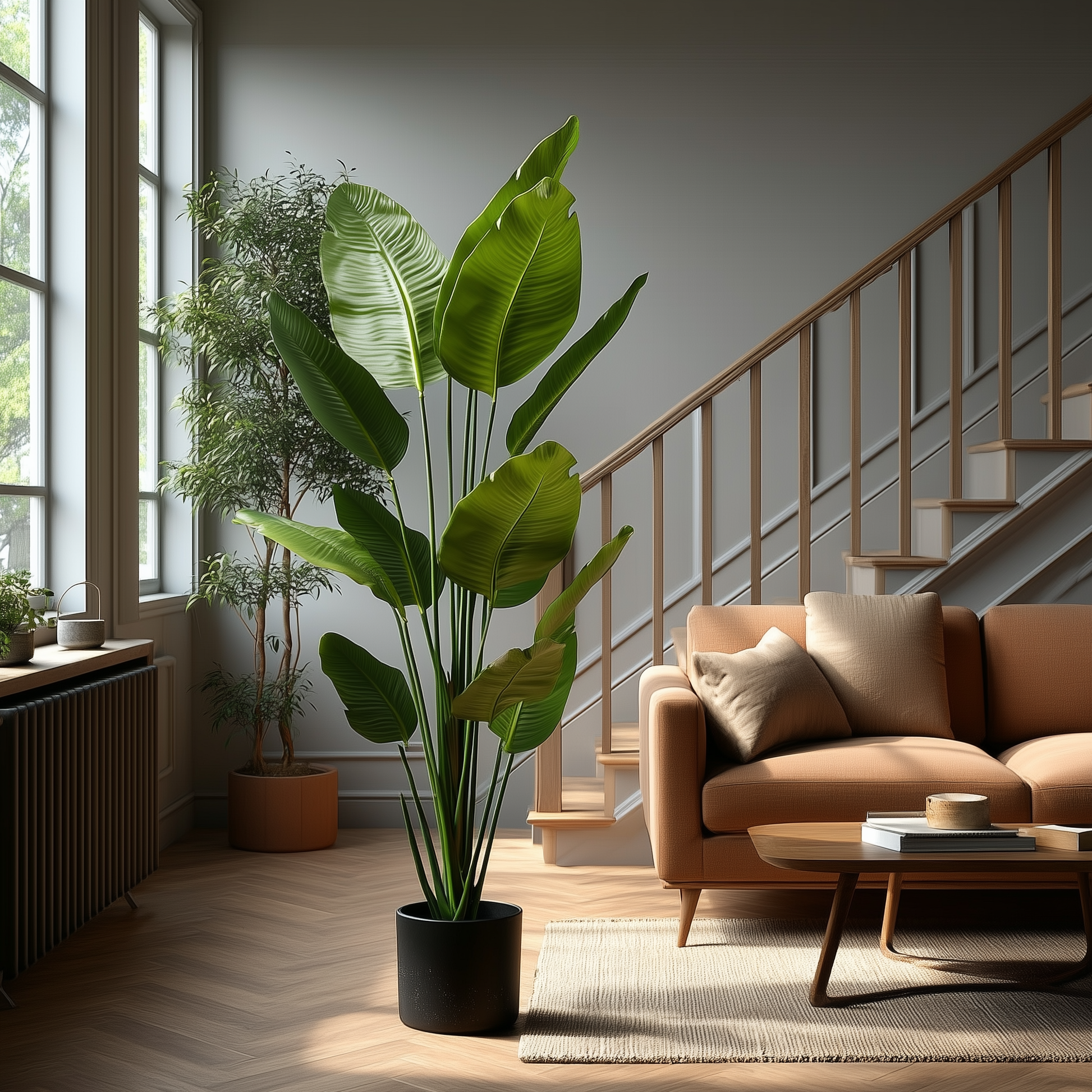 Strelitziaen er kjent for sine store, elegante blader som gir et luftig og tropisk preg. Med høyden på 180 cm fungerer den som et markant blikkfang, samtidig som den har en slank form som gjør den enkel å plassere i både hjørner og åpne flater. Den passer godt inn i moderne, nordiske og minimalistiske miljøer.